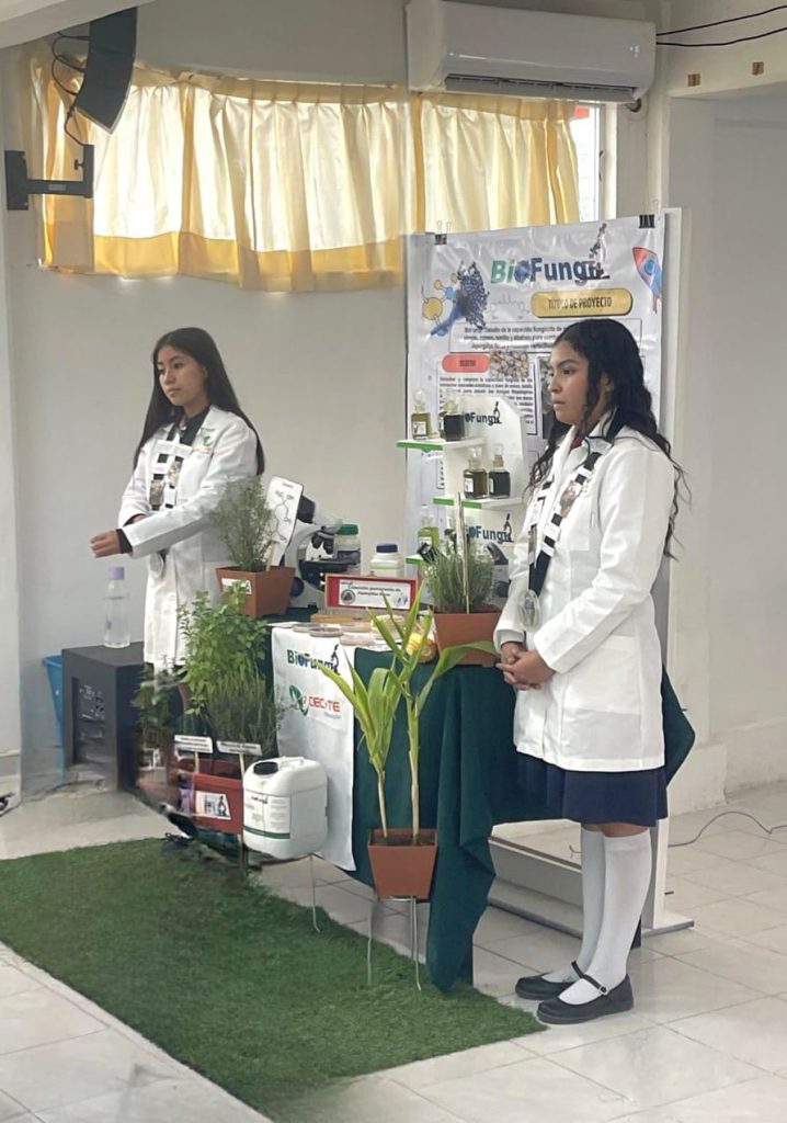 Mientras que el proyecto Biofungi consiste en un fungicida natural desarrollado para el control de hongos en cultivos de maíz. Este proyecto ofrece una alternativa sostenible y accesible que busca proteger el cultivo de manera ecológica, el cual fue desarrollado por las alumnas Jessica Nayeli Martínez Ramírez y Juana Isabel Suárez Rodríguez.