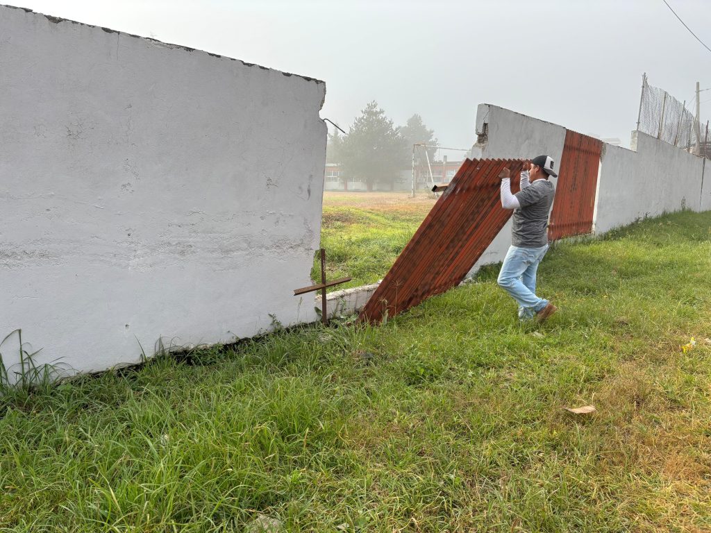 Purépero, Michoacán, 5 de noviembre de 2025.- El Colegio de Estudios Científicos y Tecnológicos del Estado de Michoacán (Cecytem) rehabilita la barda perimetral del plantel Purépero, para beneficio de más de 400 estudiantes.