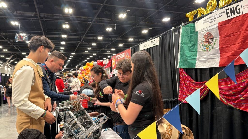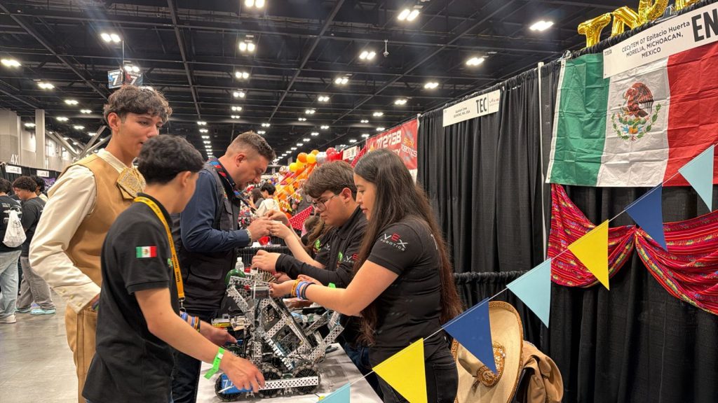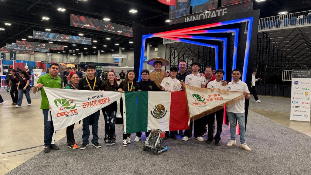 Morelia, Michoacán, 22 de abril de 2026.- Las y los alumnos del Colegio de Estudios Científicos y Tecnológicos del Estado de Michoacán (Cecytem) ya se encuentran en San Luis, Missouri, Estados Unidos, donde participa en su segundo día de actividades dentro del Campeonato Mundial de Robótica VEX 2026, una de las competencias tecnológicas más importantes a nivel internacional, que concluirá el próximo 24 de abril.